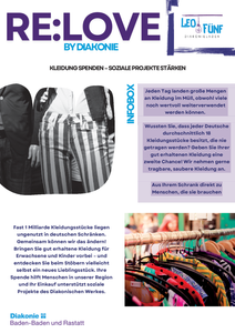 Sie können die Spenden während der Öffnungszeiten (Dienstag bis Freitag von 12 - 19 Uhr und Samstag von 10 - 16 Uhr) unseres Diakonieladen-LeoFünf bei uns abgeben.