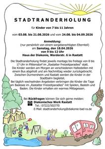 Die Anmeldung kann nur persönlich von einem sorgeberechtigten Elternteil erfolgen am 18.04.2026 von 9 bis 12 Uhr im Haus der Diakonie, Werderstr. 6 in Rastatt erfolgen!